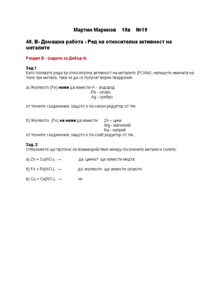 Strahotno Rabota S Red Na Otnositelnata Aktivnost Na Metalite Himiya 10 Klas
